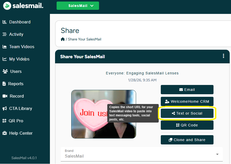 Sharing SalesMail Videos on Social