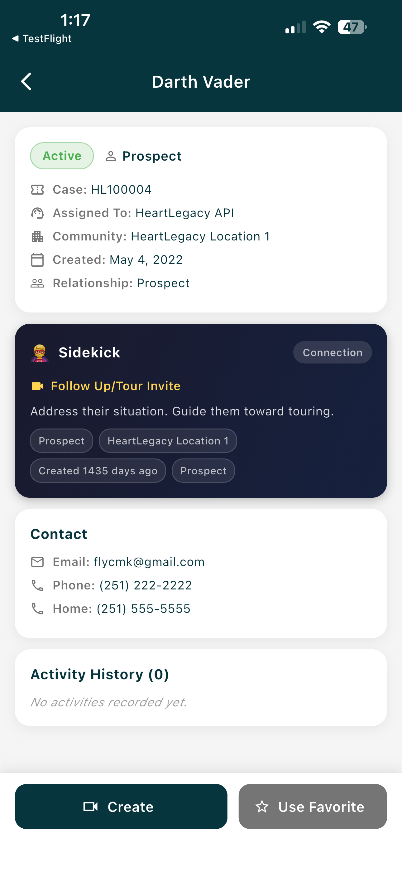Select your prospect from the search results and you'll receive Sidekick coaching on the best video to record next. Then choose to create a new video or use a favorite.