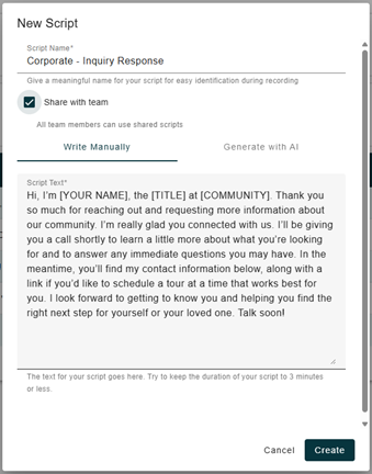 How to Add and Share a Corporate Script