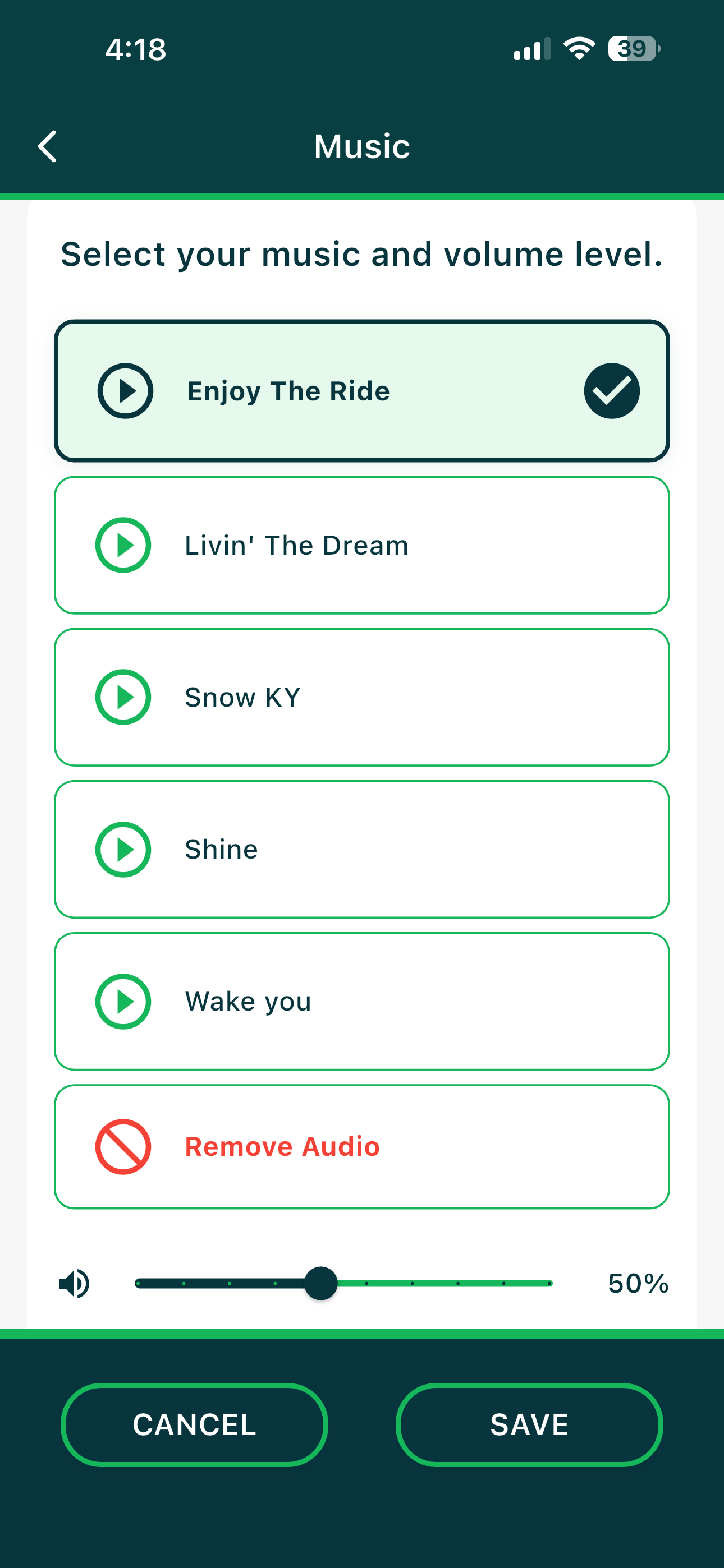 Pick from 5 preloaded music options
